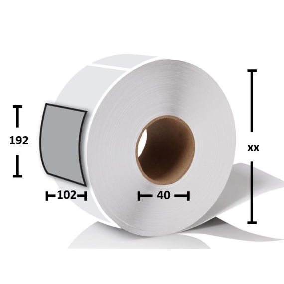 102x192 mm. TT B40 Fastyre, 40 mm kjerne. 230 etiketter pr. rull. 18 ruller pr eske, pris pr rull.